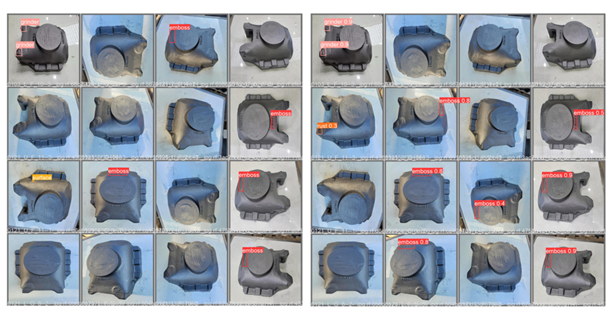 - 제품 출고 시 촬영한 양품과 불량품의 제품 이미지 데이터를 수집 및 학습하여 새로운 제품 출고 시 제품의 불량 여부와 불량의 위치 및 종류를 탐지하기 위한 object detection 모델을 개발 (YOLOv5 적용)